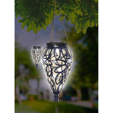 Závěsné solární svítidlo kov černý, plast černý, plast čirý, plastová ozdobná kapka, IP44 Ø135mm, V:500mm, vč.15x LED 0,06W 3,2V, 3200K